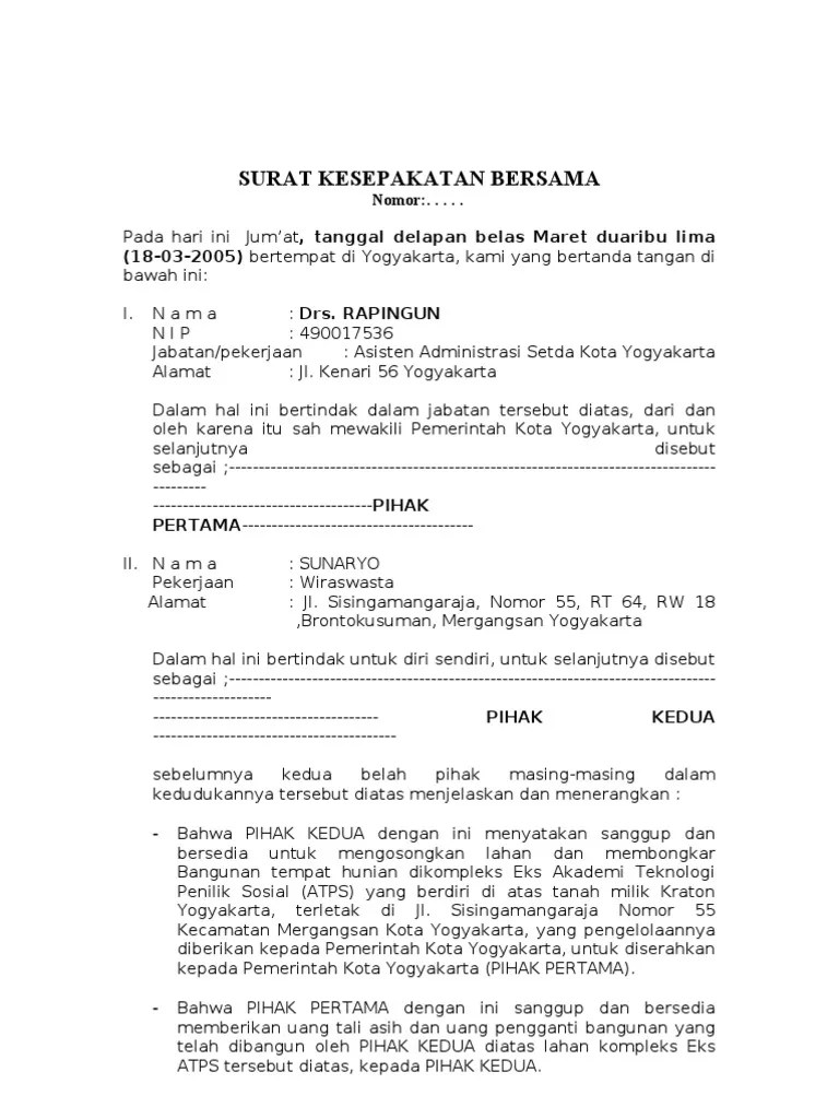 Notaris di jakarta yang telah dikeluarkan surat penerimaan pemberitahuan . Download surat kesepakatan bersama warga pictures. Demikian surat pernyataan kesepakatan bersama ini kami buat dalam keadaan sadar, sehat jasmani dan rohani, dan tanpa paksaan dari pihak manapun. Pelaksanaan nota kesepakatan bersama ini secara rinci akan dituangkan lebih lanjut dalam suatu surat perjanjian kerjasama (spk). Angkasa pura 1 airports kesepakatan bersama antara badan pengembangan sumber.
